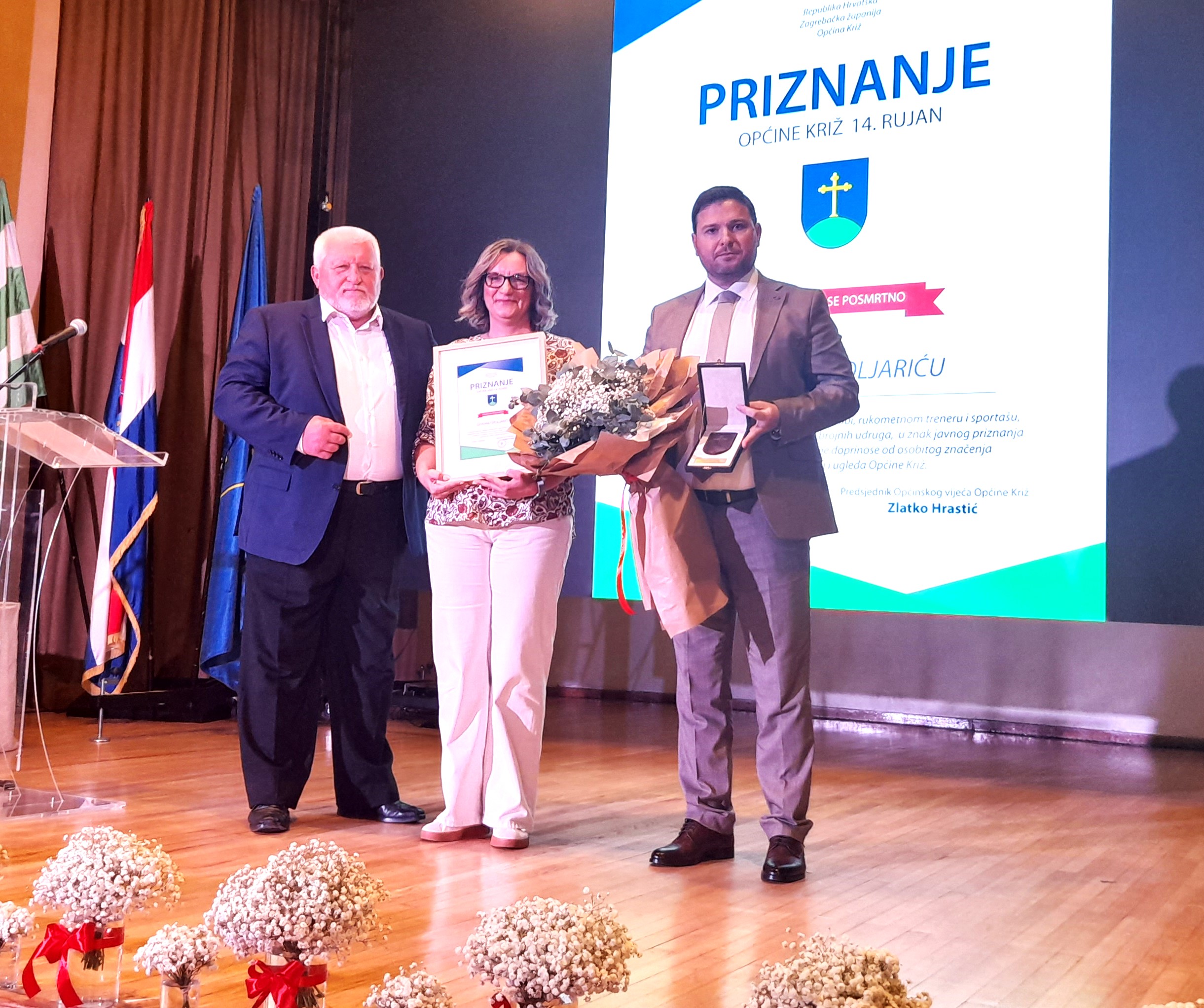Nakon prigodnih govora je tradiocionalno slijedila dodjela javnog priznanja Općine Križ «14. rujan» koju je ove godine posthumno dobio Goran Špoljarić. Goran Špoljarić bio je hrvatski branitelj, rukometni trener i sportaš, dobrovoljni darivatelj krvi i član brojnih udruga, a nagradu je preuzela njegova supruga.