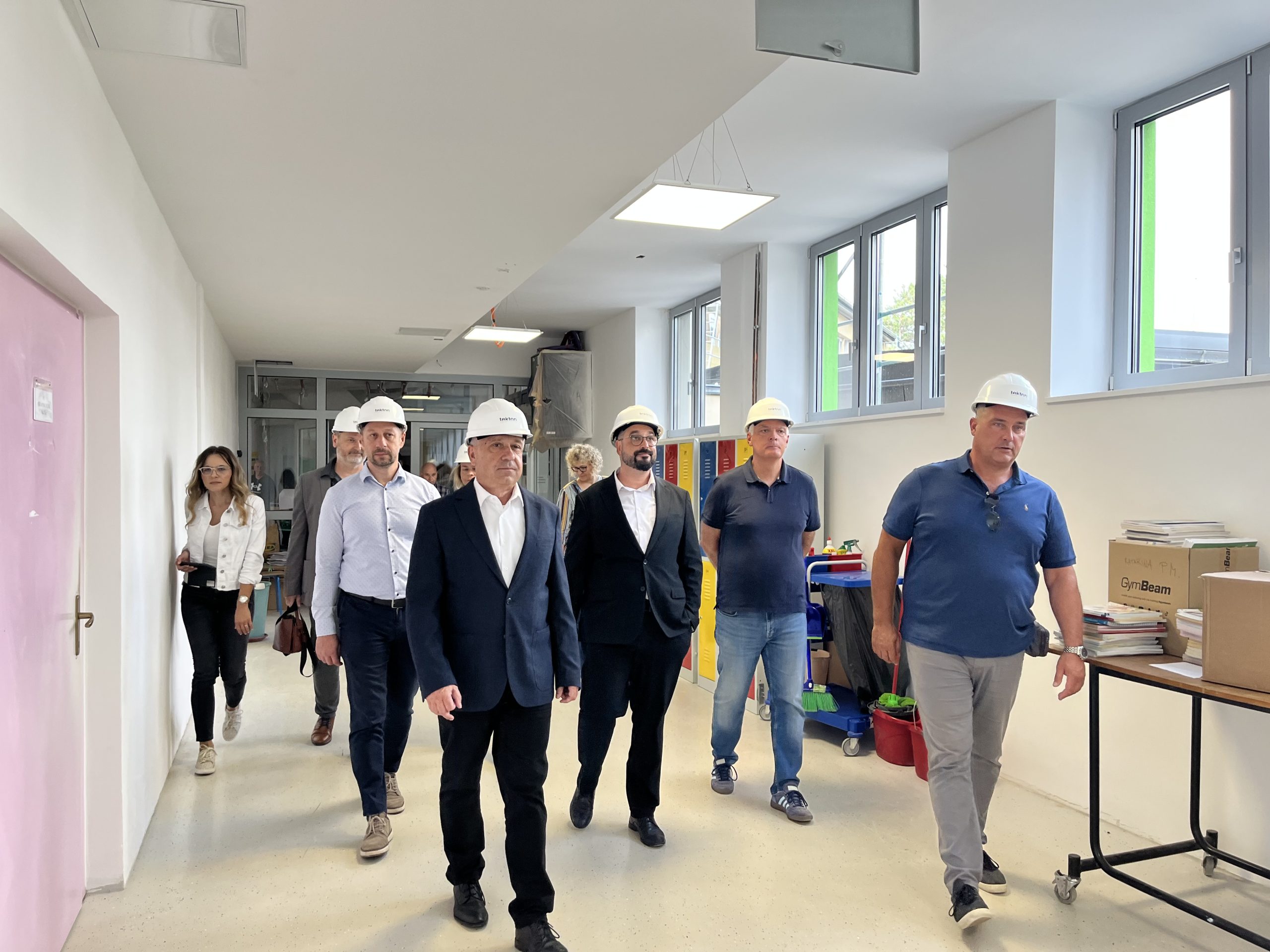 Uz njega su bili pročelnik UO za gospodarstvo i fondove Europske unije Damir Fašaić te pročelnik UO za odgoj i obrazovanje Ivica Radanović. U ime Ivanić-Grada prisustvovali su gradonačelnik Javor Bojan Leš te njegov zamjenik Tomislav Cuvaj, a dočekao ih je ravnatelj škole Mileo Todić koji je otkrio da bi radovi trebali biti završeni do 15. ožujka 2026. Tijek radova za sad ide po planu. Dodao je da su radovi na kuhinji i blagovaonici pri kraju te da bi kuhinja trebala početi s radom početkom listopada.