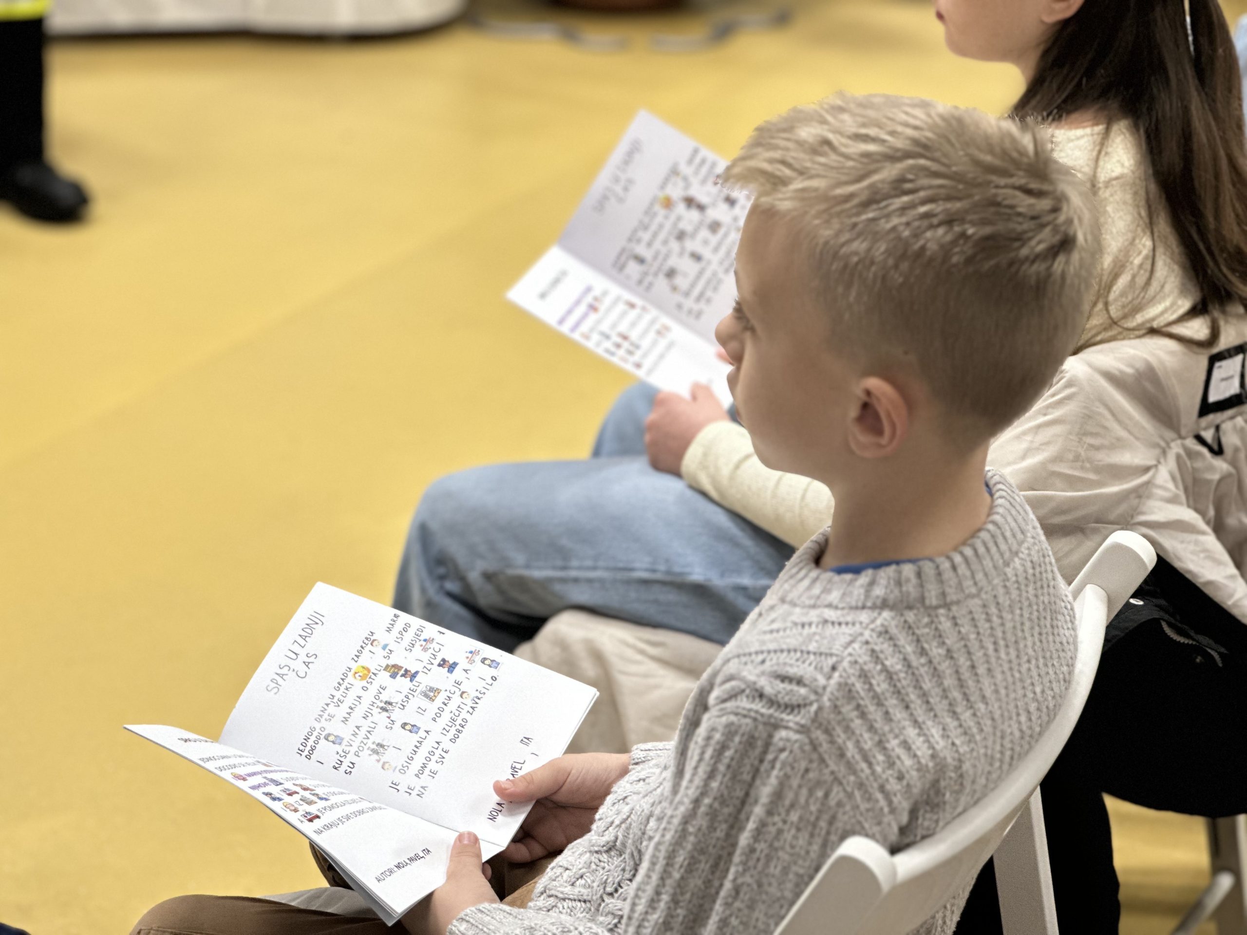 Kako bismo zaokružili cijelu priču organizirali smo i svečanu promociju ove publikacije u kojoj su, uz odrasle vatrogasce, priče čitali i sami autori – djeca. Željeli smo im dati priliku da javnim nastupom ojačaju svoje samopouzdanje i da njihove priče pročitaju njihovi brojni vršnjaci.