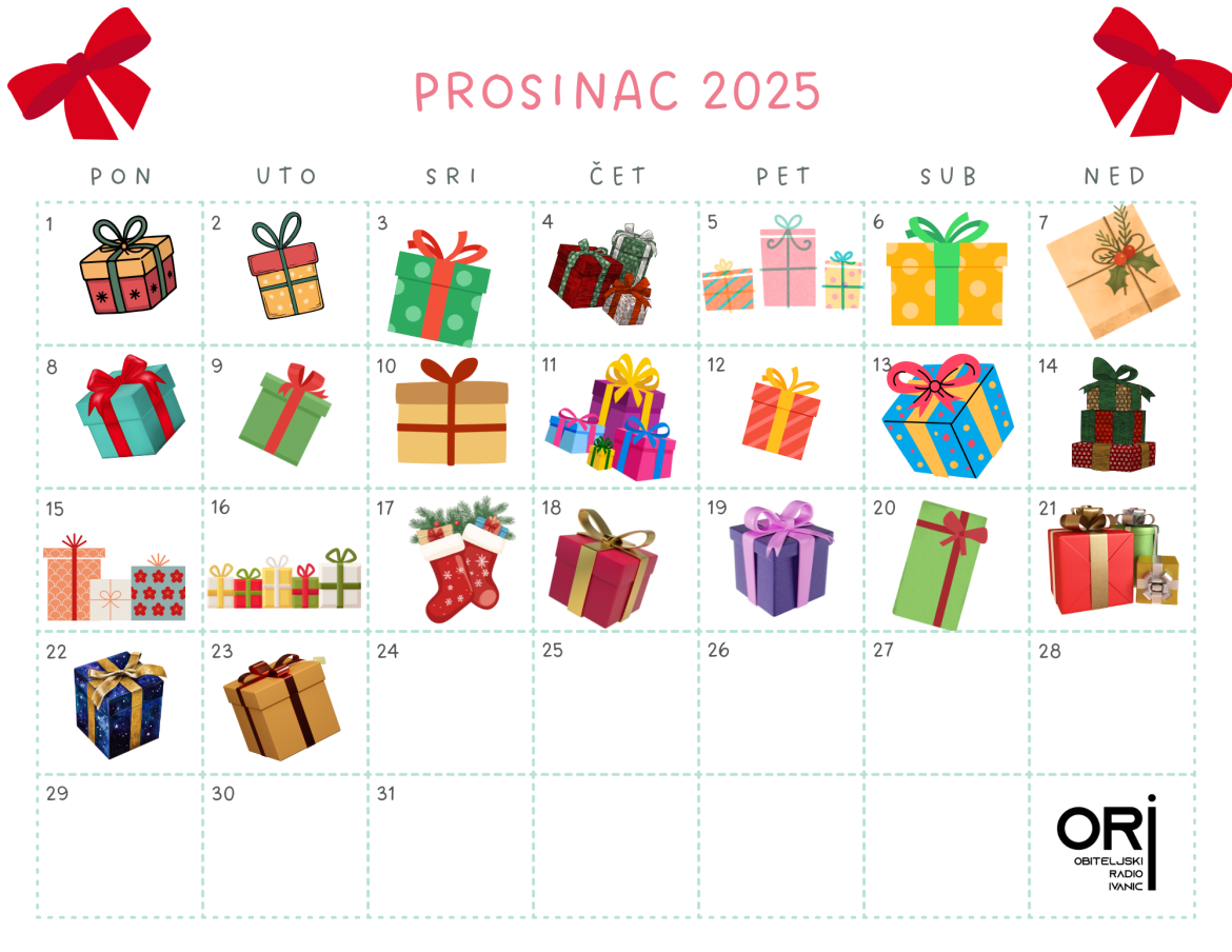 Kako bismo vam dodatno uljepšali blagdansko vrijeme, od 1. do 23. prosinca ćemo svakog jutra na našoj facebook stranici otvoriti jedan prozorčić ORI adventskog kalendara. U svakom prozorčiću čeka vas prekrasna nagrada naših sponzora – blagdanske rukotvorine, kozmetički tretmani, kolači i brojna druga iznenađenja!