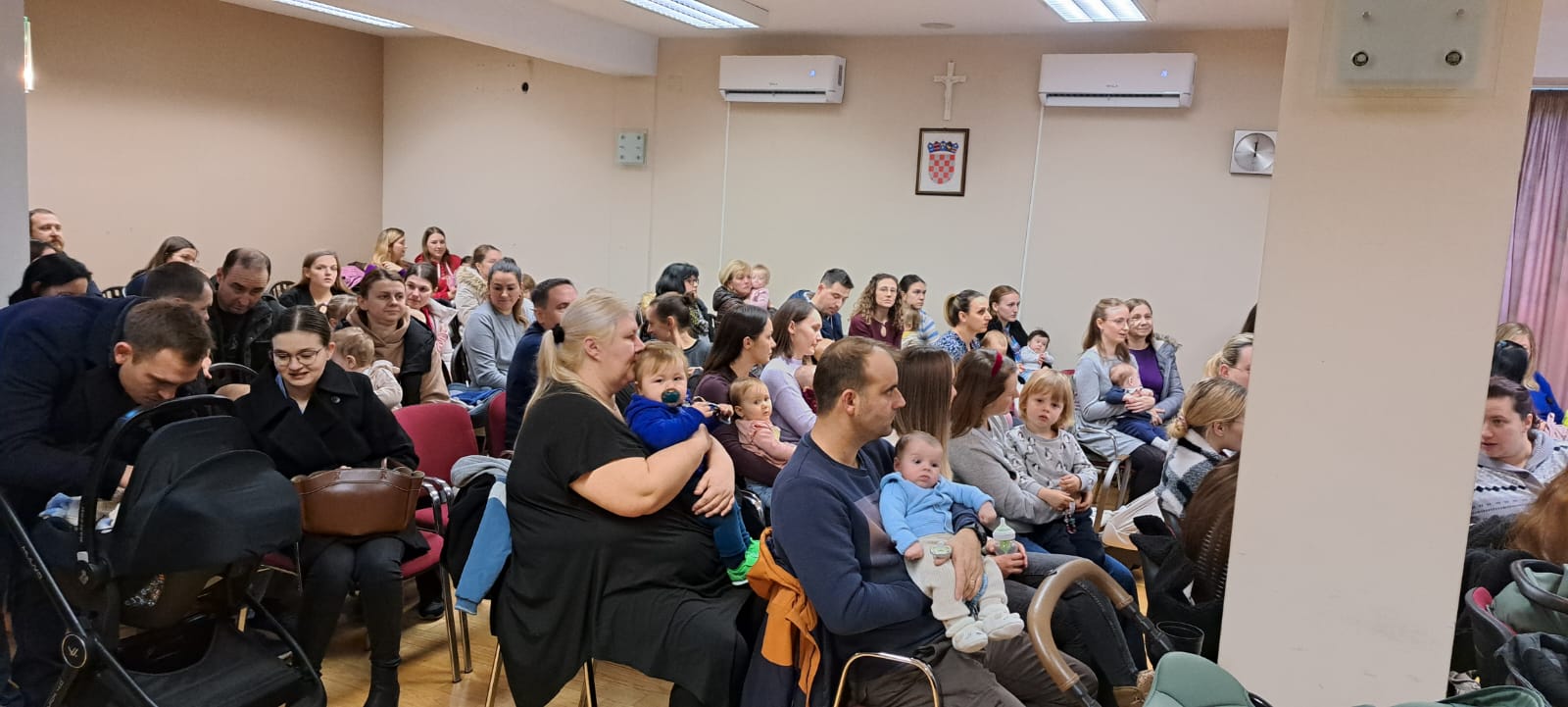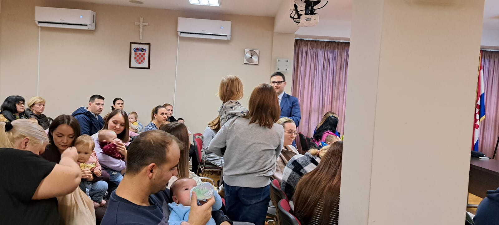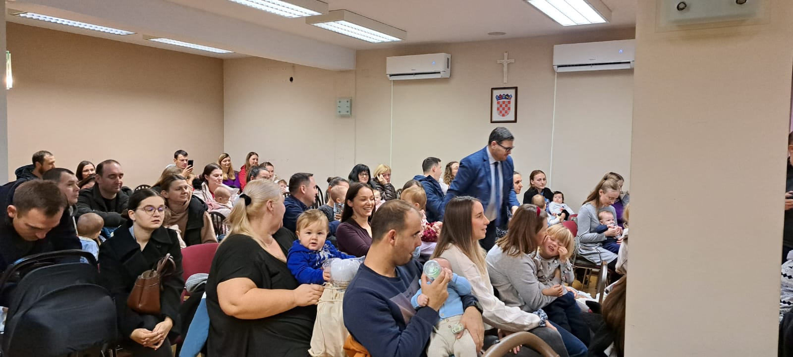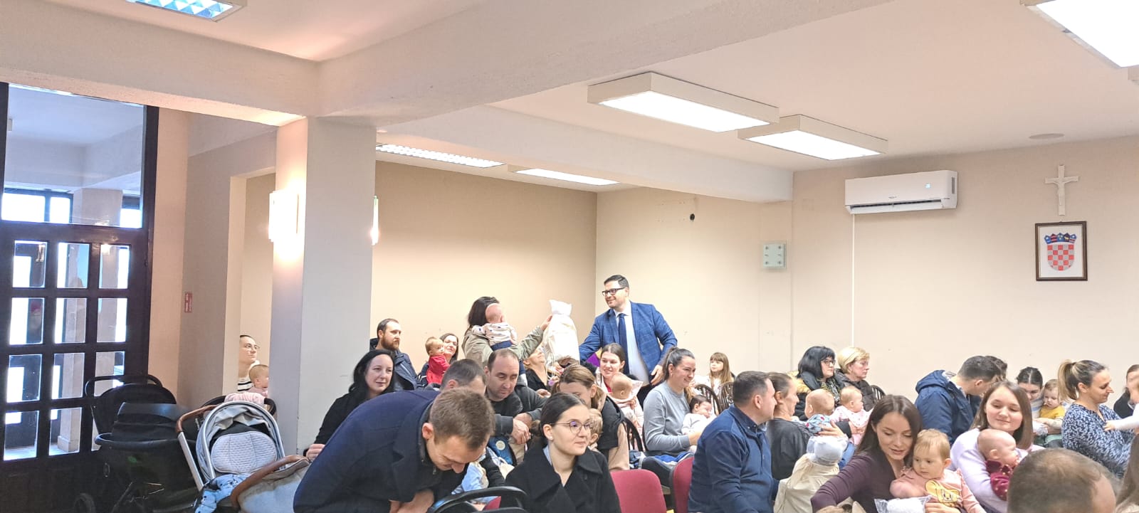 Načelnik Općine Križ Marko Magdić je ugostio roditelje i njihove mališane te ih darivao prigodnim paketima u kojima su se nalazile korisne potrepštine, poput bočica, krema, vlažnih maramica, kašica, plišanog medvjedića i unikatnog balavca kojeg su izradile članice udruge “Ženske ruke”.
