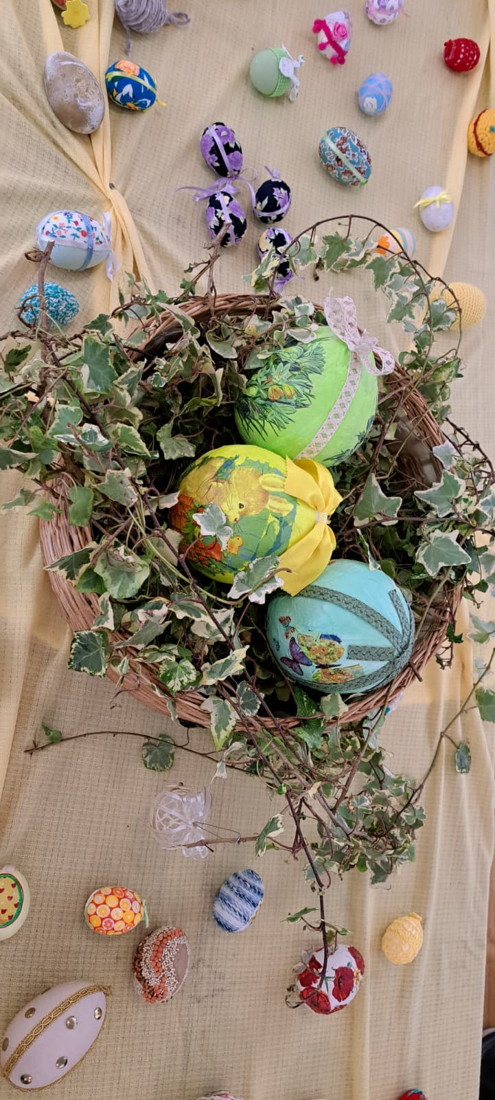 Na radionicama su sudjelovali roditelji i djeca koji su sve ukrašavali recikliranim materijalima – trakicama u boji, sjemenkama povrća, rižom, žitaricama i sl. Izložbu koja je okupila mnoštvo oduševljenih posjetitelja je otvorila predsjednica udruge Ivka Crnogaj zahvalivši svima na potpori i zaželivši im sretan Uskrs.
